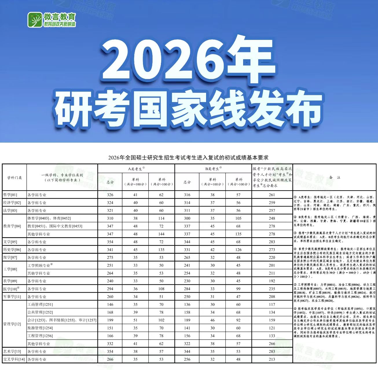 2026年研考国家线发布